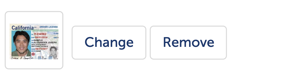 Once a file has been uploaded, the user will see a preview of their selected image, along with the options to "Change" or "Remove" it. If neither, they can proceed with submitting the document.