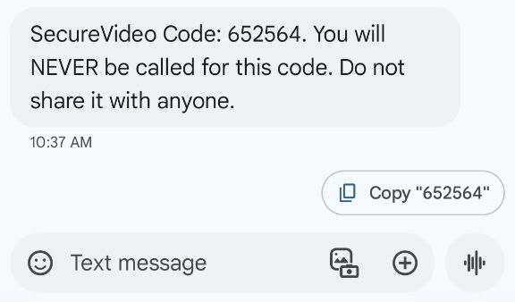 3. You will receive a text message from SecureVideo that looks like this: